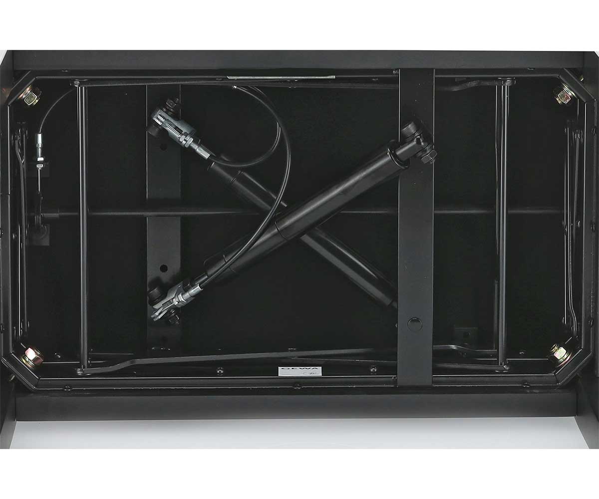 Die komfortable Höhenverstellung erfolgt mittels 2 starken Gasfedern die unter der Bank verbaut sind.